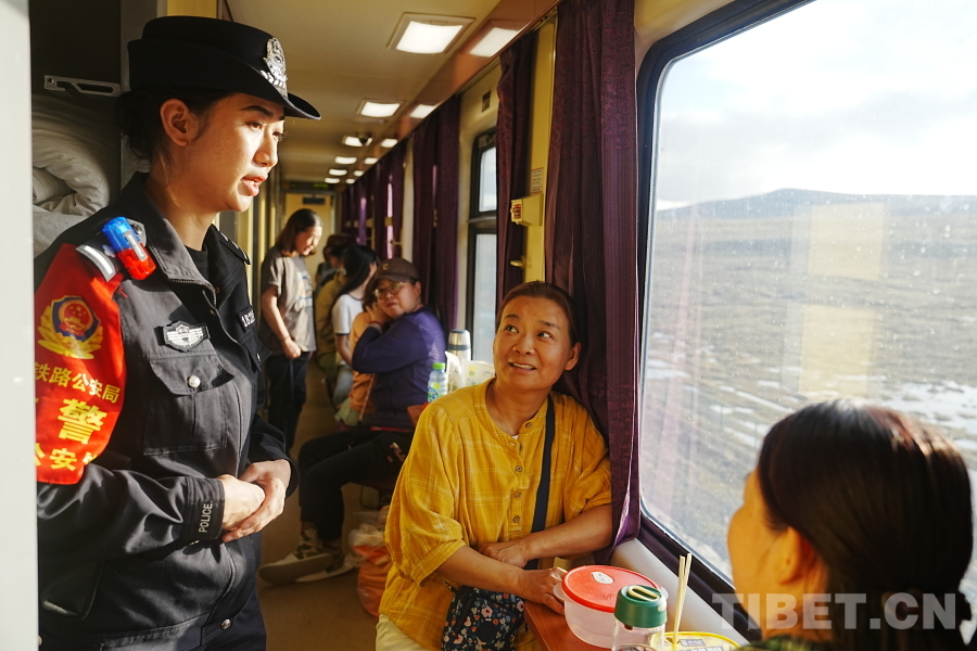 圖為列車通過可可西里無人區,向旅客群眾講述藏羚羊的故事 攝影:賀瑞明