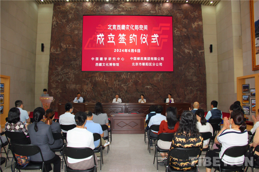 中國西藏網訊 6月6日,中國藏學研究中心西藏文化博物館與中國郵政集團有限公司北京市朝陽區分公司聯合建立“北京西藏文化郵空間”合作簽約儀式在西藏文化博物館(下文簡稱“博物館”)舉行。中國藏學研究中心(下文簡稱“藏研中心”)副總干事李德成、中國郵政集團有限公司北京市朝陽區分公司總經理梁洪濤、藏研中心相關部門負責人出席活動。