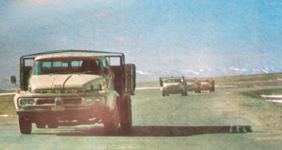 圖為70年代,青藏公路上通行的車輛