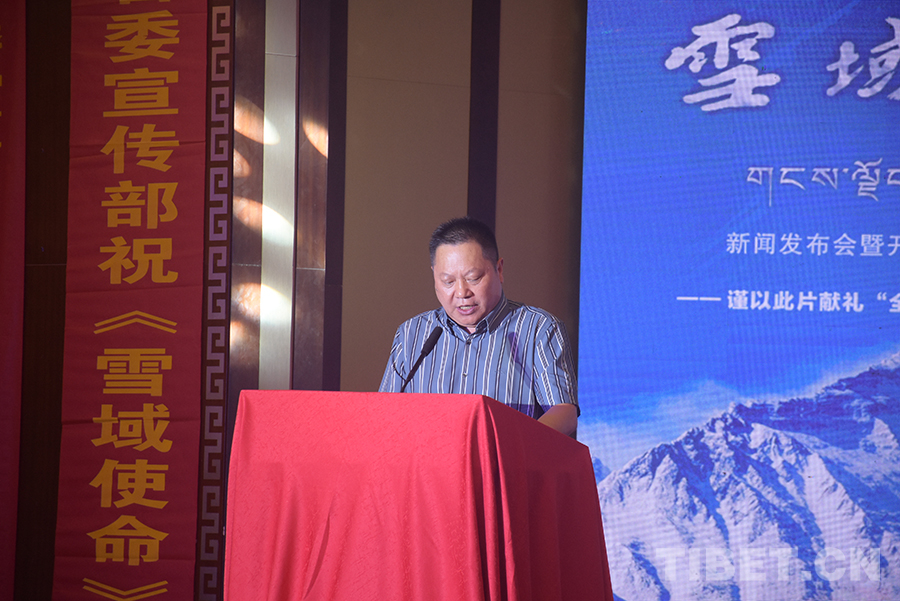 圖為安徽省第一批援藏干部、《雪域使命》總出品人、制片人舒友忠發言 攝影:德吉卓瑪