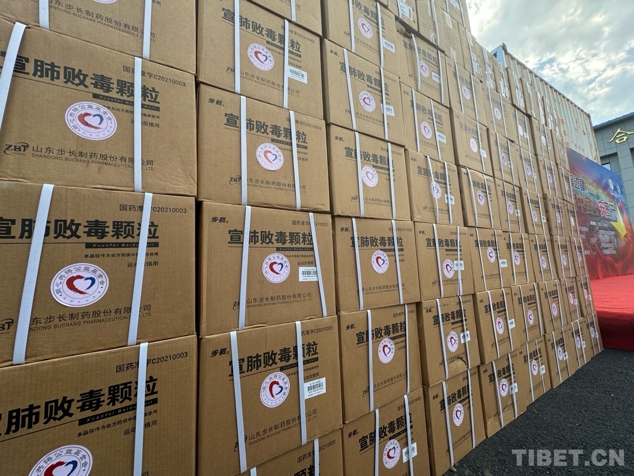 圖為2024“同心共鑄 情暖邊疆”——走進安圖大型公益活動啟動儀式現場的捐贈藥品
