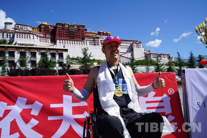 布達拉宮終點處人頭攢動,工作人員為每一位完賽選手獻上哈達、掛上獎牌,和選手們一起享受拉薩半程馬拉松挑戰完成的滿足與快樂。來自山東濟寧的任先振是本屆拉薩半程馬拉松唯一一位輪椅半程選手,他告訴記者,這一路他不僅沒有高反,且因為是自己參加過最高海拔的半程馬拉松而更加富有激情,在拉薩他感受到了許多來自藏族同胞的關心與溫暖,來到高原前他已經報名了拉薩旅游團,他要去看看屬于雪域高原的美景。