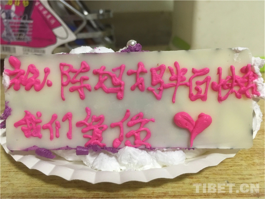 圖為同學們在給陳英姿老師的生日蛋糕上寫下祝福