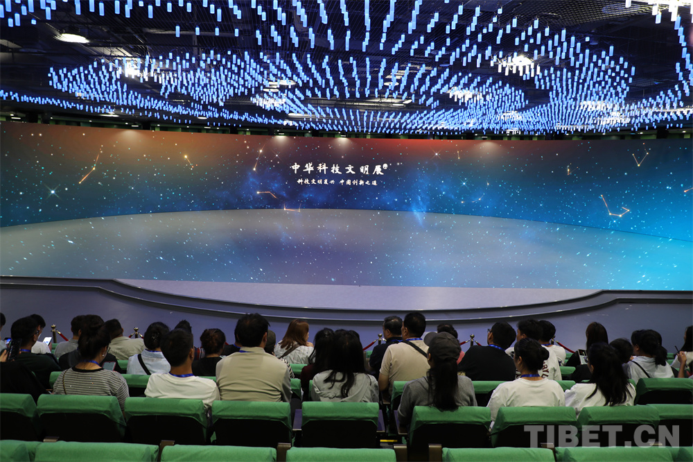 圖為西藏自治區科技專干進京考察學習團參觀中國科學家博物館,觀看中華科技文明展短片 攝影:王茜