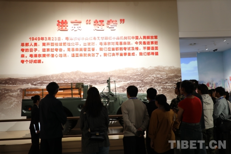 來自拉薩、日喀則、林芝、山南4市45名科技專干在講解員娓娓道來中想象當時的歷史場景:1949年3月23日,離開西柏坡之際,毛澤東“對周恩來說:今天是進京的日子,進京趕考去。周笑答,我們應當都能考試及格,不要退回來。毛澤東說,退回來就失敗了。我們決不當李自成,我們都希望考個好成績。”……
