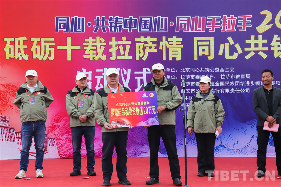 “同心?共鑄中國心”是由步長制藥發起,中央統戰部、國務院僑辦和國家衛生健康委員會指導,中國西藏文化保護與發展協會和北京市紅十字基金會聯合主辦的大型公益活動。為響應黨中央提出的“健康中國 精準扶貧”的戰略部署,在中央統戰部的支持下,在同心共鑄公益基金會的指導下,自2014年啟動“同心·共鑄中國心·同心手拉手”活動,以全國醫藥零售行業、流通商業志愿者為主,以困難家庭學生為主要資助對象,開展定點、定向的愛心志愿服務。(中國西藏網 記者/賈華加 德吉卓瑪)