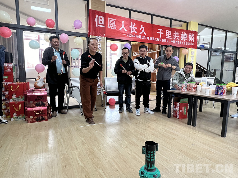 中國西藏網訊 9月13日,為慶祝中秋佳節和第四十個教師節,浙江省杭州市錢塘區駐四川省甘孜藏族自治州理塘縣工作隊全體專技人才在理塘縣青少年普通話實訓基地歡聚一堂,共話團圓。
