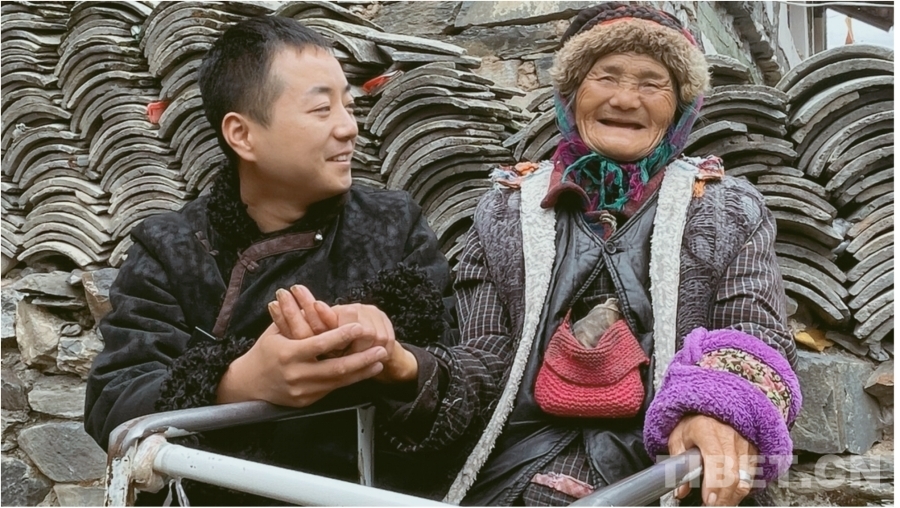 第二個老師是兩腿癱瘓的獨居藏族老人斯達木,是楊斐在第一次下鄉時遇到的。老人耐心教楊斐藏語,楊斐給老人帶去了輪椅、拐杖、紙尿褲等生活用品,兩人感情日漸深厚,他認斯達木老人當了干媽。