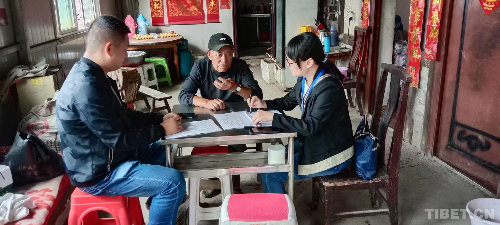 圖為援藏期間,王燕(右一)正在走村入戶進行調研 受訪者供圖