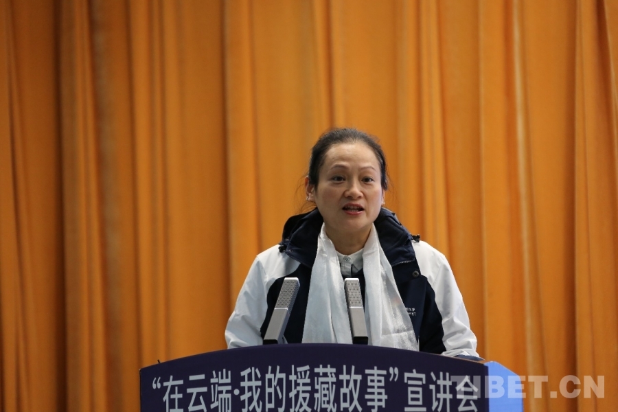 圖為袁莉在宣講現場 攝影:龍真多吉