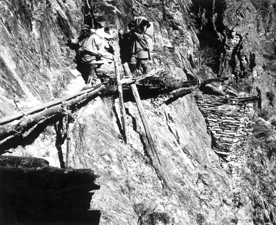 《農奴們外出支差,在峭壁棧道上艱難地行走(1957年攝 )》 作者:陳宗烈