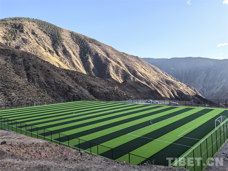 圖為西藏自治區(qū)昌都市洛隆縣馬利鎮(zhèn)如今煥然一新的足球場(chǎng)