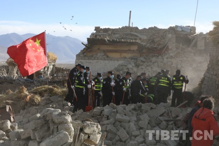 中國西藏網訊 1月7日9時5分,在西藏日喀則市定日縣措果鄉附近發生6.8級地震,震源深度10千米。西藏出入境邊防檢查總站移民管理警察在西藏日喀則市定日縣長所鄉玉白村參與救援及安置工作。五星紅旗之下,是國家對災區群眾的守護,亦是災區群眾對黨和國家救援力量的期盼。有五星紅旗的地方就有信念的燈塔,這是災區一線的守望!(中國西藏網 通訊員/郭遠敬)