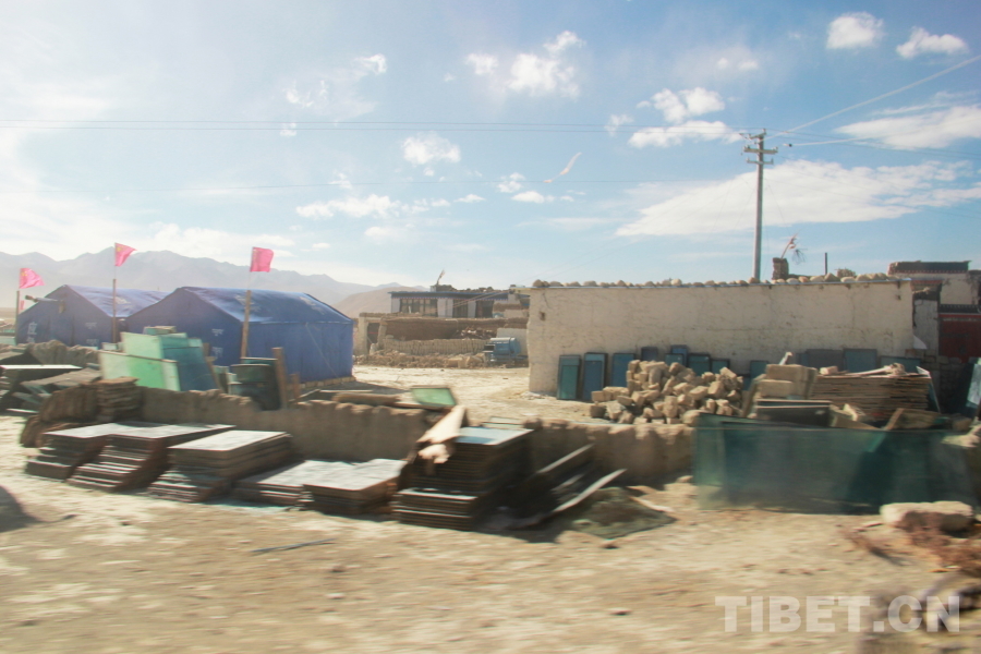 圖為地震重災區西藏自治區日喀則市定日縣長所鄉除險現場,玻璃窗、門板等部分尚能再次利用的建材被細心集中收集放置 攝影:劉莉