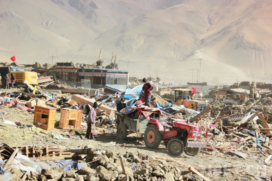 圖為地震重災區西藏自治區日喀則市定日縣長所鄉除險現場 攝影:劉莉