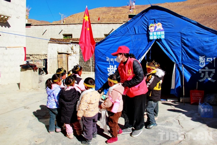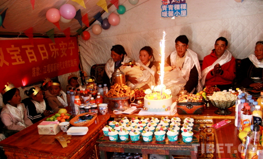 中國西藏網訊 午后,陽光明媚,西藏自治區日喀則市定結縣江嘎鎮榮貢村村民旦增點旦家院子里的臨時帳篷里傳出陣陣孩子們歡樂的笑聲歌聲。1月18日,旦增點旦的雙胞胎寶寶迎來百天,溫馨的“情暖震后帳篷,共賀雙寶百日”活動在這里舉辦。