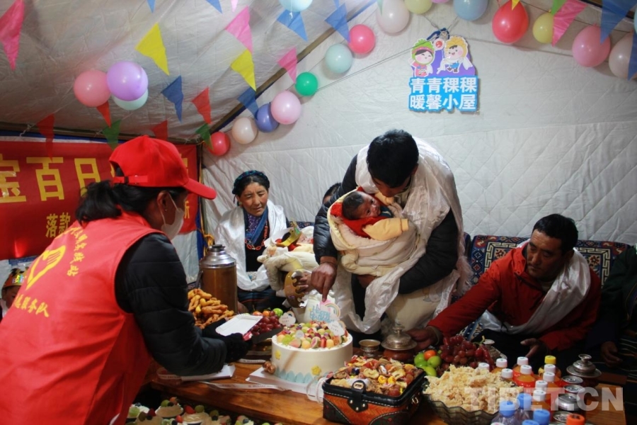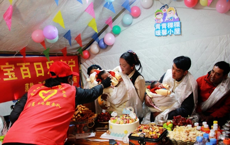 圖為在西藏自治區日喀則市定結縣江嘎鎮榮貢村舉辦的“情暖震后帳篷,共賀雙寶百日”活動 攝影:劉莉