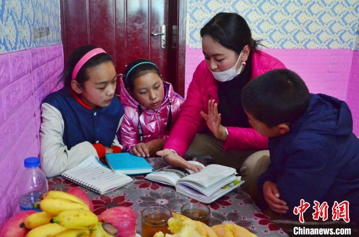 學生松吉加的姥姥向中新網記者介紹:“才讓吉老師知道孩子沒法上網課以后,已經來教了三次,我特別感激她。”