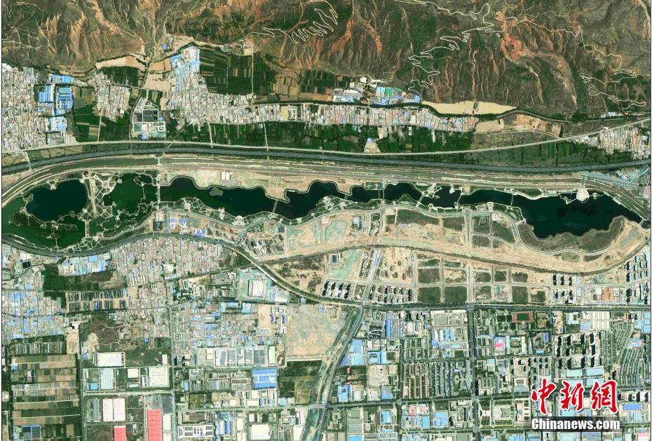 圖為衛星視角下的青海省會西寧市的北川河濕地。青海省地質調查院 攝