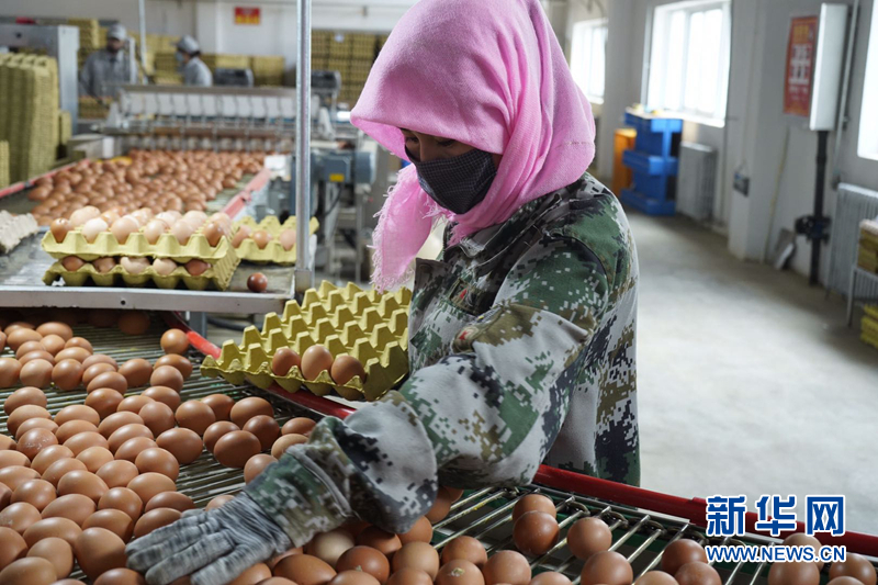 在德青源金雞扶貧產業園內,工人正在挑揀雞蛋。新華社記者 朱藝琳 攝