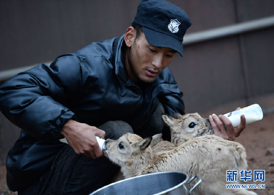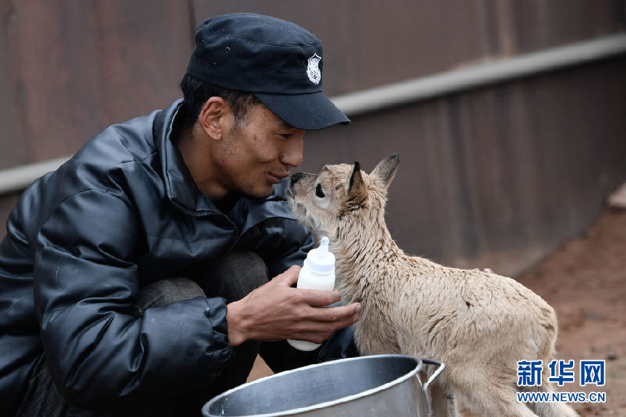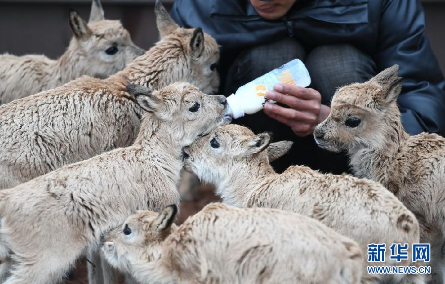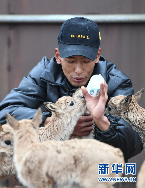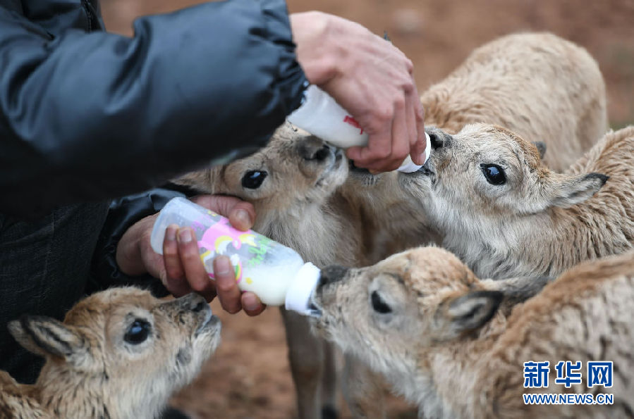 為讓11只藏羚羊幼仔盡快適應(yīng)環(huán)境、健康成長,卓乃湖保護站安排專人,在特定區(qū)域?qū)ζ溥M行喂養(yǎng)。記者在卓乃湖保護站看到,每日早、中、晚,巡山隊員才文多杰會按時給小藏羚羊喂奶,每只小藏羚羊都有自己的“專用”奶瓶。