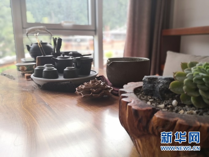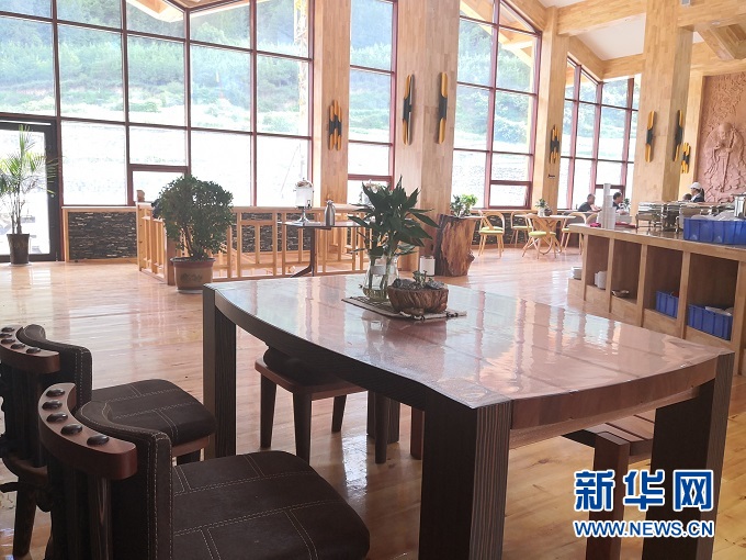 傍晚時分走進高吉村,錯落有致的民宿散落山間,落地窗透出暖黃色的燈光。房間里藏式床鋪與原生態家具相映成趣,靠窗的榻上擺放著茶幾、茶具、綠植,一覽無余的窗外夕陽半落、云飛鳥散。游客接待中心也一改傳統樣式,樓上是純木質、開放式餐廳,樓下是小橋流水、曲徑通幽的水景,游客們三三兩兩的喝著咖啡,享受著詩意的人生。