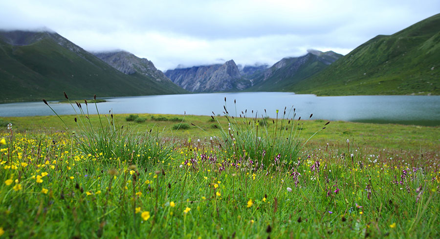 圖為年保玉則保護(hù)區(qū)內(nèi),五顏六色的小花鋪滿湖岸。劉歡 攝