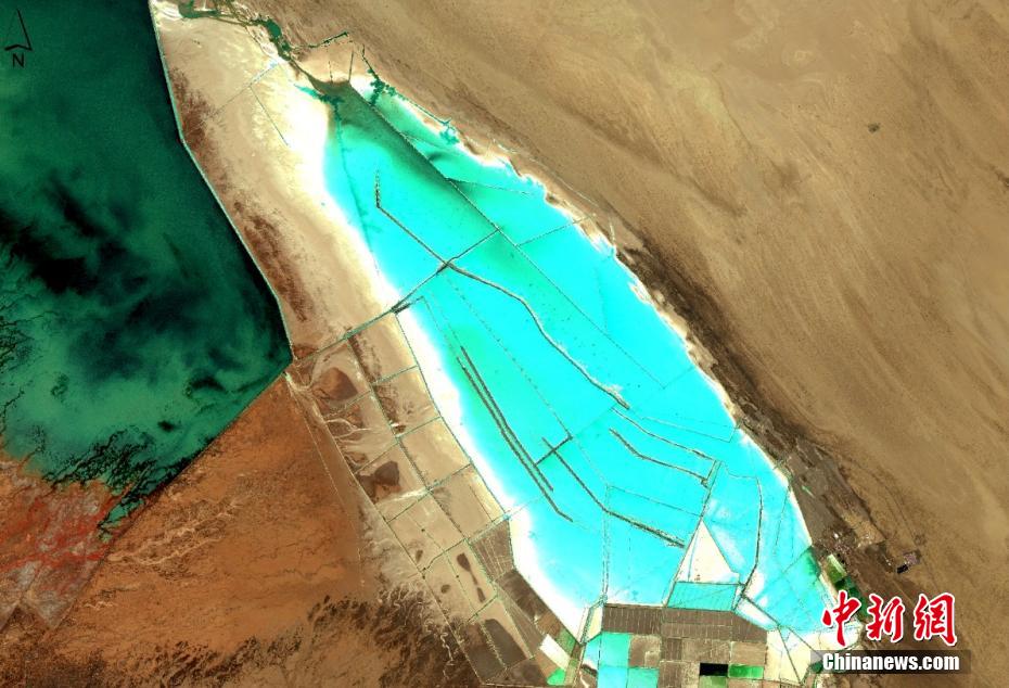 青海鹽湖的衛星視角:星羅棋布宛如碧玉