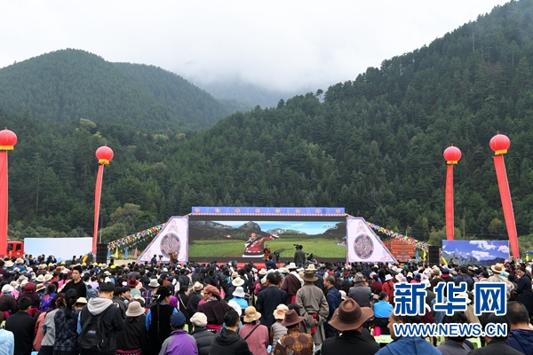 這是9月9日在甘南藏族自治州迭部縣拍攝的扎尕那生態旅游養生特色小鎮開工儀式現場。 新華社記者 范培珅 攝