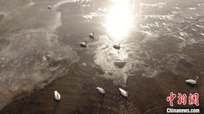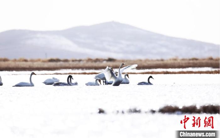 連日來,隨著氣溫下降,成群的野生大天鵝陸續飛臨四川省阿壩州若爾蓋縣高原小鎮麥溪鄉的洛賈瓊果河棲息越冬。近百只天鵝在偌大的湖面上自由自在地覓食嬉戲,一會兒在天空翱翔,一會兒又成群結隊地在湖面上追逐,描繪出一幅冬日天鵝湖的美麗景象。洛賈瓊果河因地熱河水終年不結冰,這也為國家二級保護動物大天鵝越冬創造了良好環境。