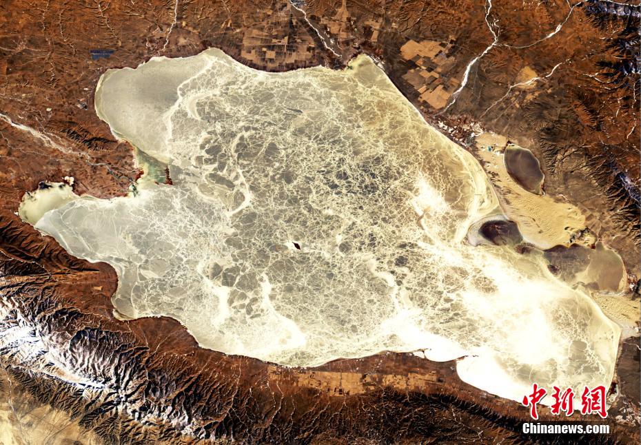 圖為2020年12月26日青海湖的尕海、海晏灣、耳海逐漸封凍,湖岸出現大量湖冰。 青海省地質調查院衛星遙感中心 供圖