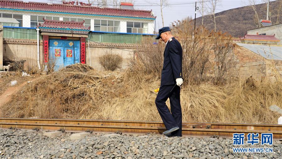 2月22日,王光華沿著鐵軌正在巡檢。新華社記者 嚴賦憬 攝