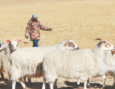 達玉村生態畜牧業專業合作社放牧員才科在放牧。王梅 攝