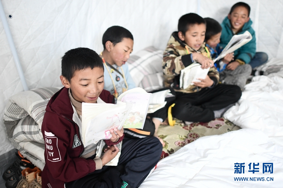灰白色的天幕下,湛藍色的救災帳篷顯得格外顯眼。學校教師拉毛措告訴記者:地震發生后,老師們組織186名學生在5分鐘內全部疏散到操場,隨后轉移到搭建好的救災帳篷內。