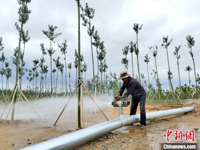 正如何香龍說的“三分種,七分護”,栽樹完成后,為了能讓樹苗存活,澆水是必不可少的工作。“干旱、風大,都是我們這里植被生存面臨的難關,為此,青海省林草局投資200萬元鋪設了灌溉系統,每棵樹特地用三腳架固定起來了。”何香龍說。