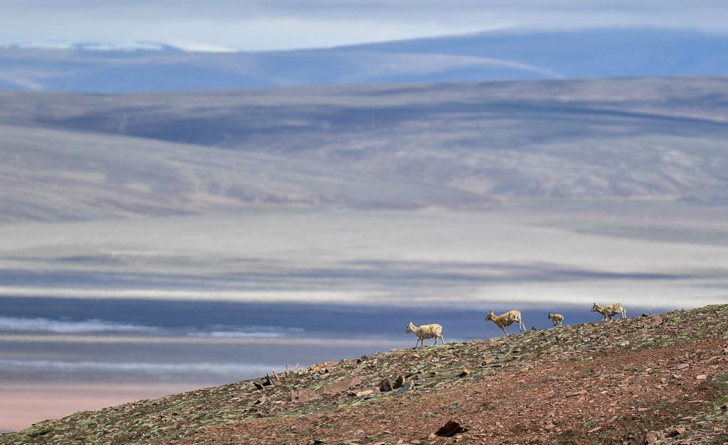 這是2020年7月7日在可可西里卓乃湖區域拍攝的藏羚羊。 新華社記者 張龍 攝