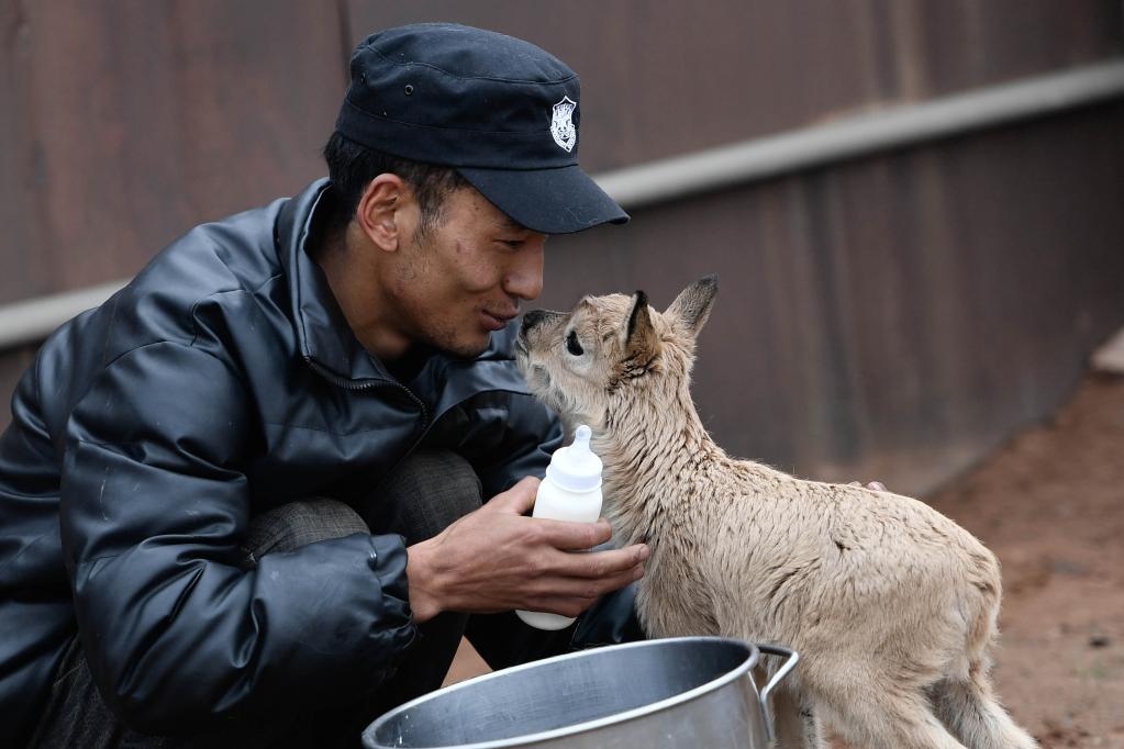 在可可西里索南達杰保護站,修建了野生動物救助中心。巡山隊員們義務當起“奶爸”,照顧著與羊群走失、失去“媽媽”的藏羚羊幼仔。