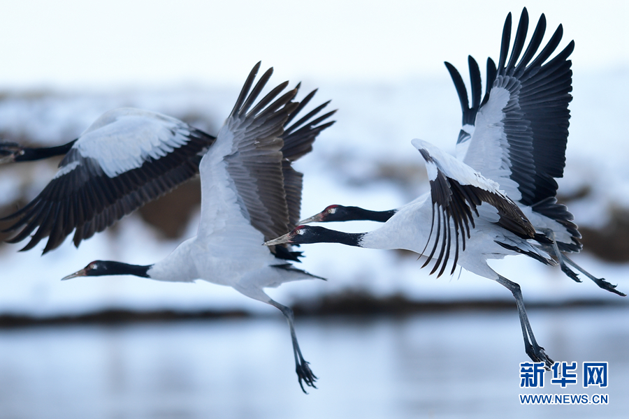 10月21日在三江源國家公園黃河源園區內拍攝的黑頸鶴。新華社記者 張龍 攝