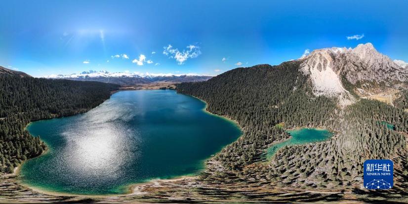 這是10月24日在四川甘孜巴塘縣措普溝景區內拍攝的措普湖(無人機全景照片)。新華社記者 胥冰潔 攝