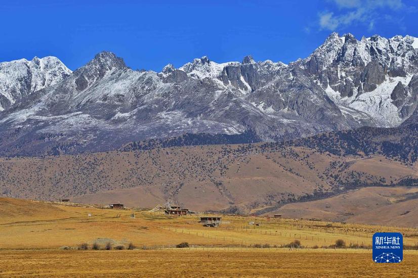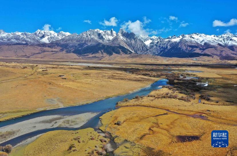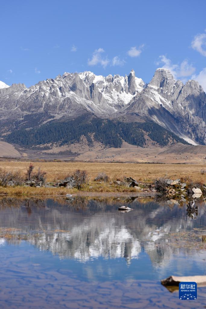 這是10月24日在措普溝景區內拍攝的章德草原和扎金甲博神山。新華社記者 劉坤 攝