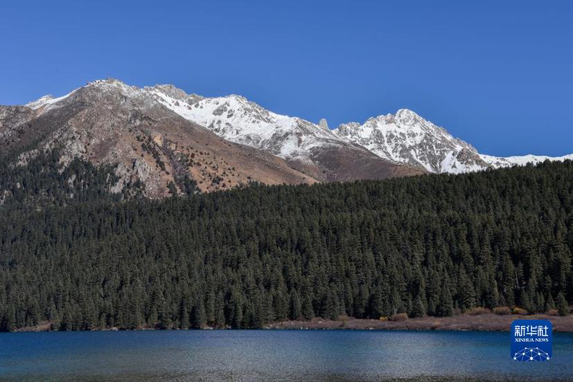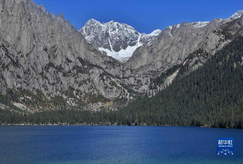這是10月24日在措普溝景區內拍攝的扎金甲博神山和措普湖。新華社記者 劉坤 攝