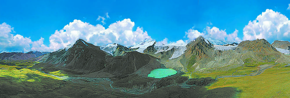 遠眺索布查葉,山脈頂部云霧環繞,山坡上青翠欲滴,山腳下無數銀鏈般的細流在廣袤的草地上開枝散葉。