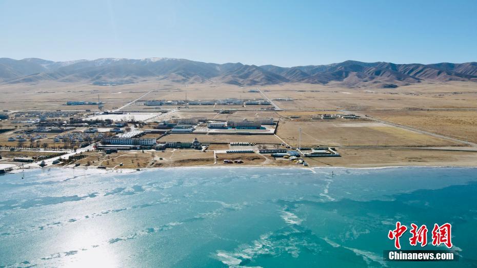 12月21日,航拍冬日青海湖。冬日青海湖周圍的積雪將湛藍的湖面包裹起來,不斷上凍的湖面猶如一面鏡子。(無人機照片) 中新社記者 李江寧 攝