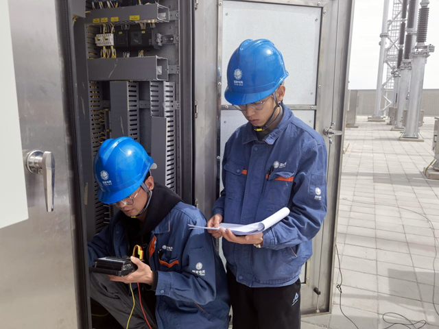 變電檢修人員對設(shè)備開展細(xì)致驗收。李斌 攝