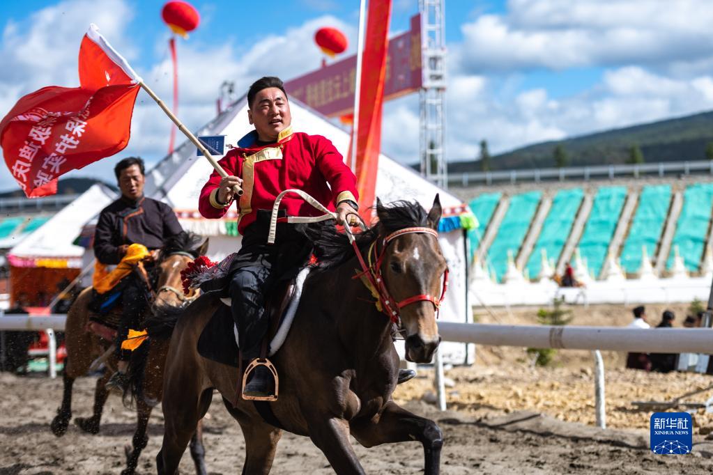 6月3日,騎手在賽馬節上進行馬術表演。新華社記者 曹夢瑤 攝