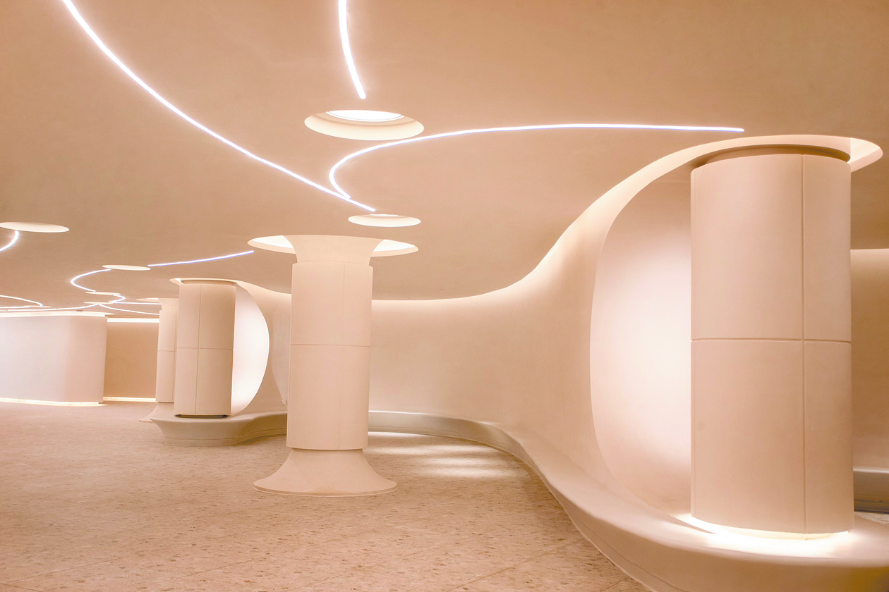 “看見九寨”大樓內的10余個空間里,設計團隊用不同的色彩和科技表現手法表達出不同的舒緩風格,治愈人心。“獨自醒來”藝術館運用弧形和曲線,將空間切割出曼妙的身形,輕盈靈動,淺黃柔色的燈光彌漫著溫柔氣息;以白色調為主的“九寨時光”圖書館,能讓人從浮躁中快速安靜下來。