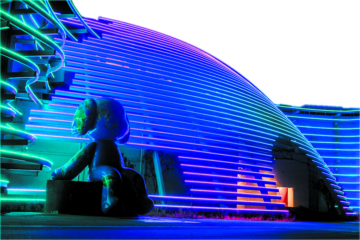 在四川省阿壩藏族羌族自治州九寨溝漳扎鎮中心位置,距離景區5.5公里的地方,一棟又像雪山又像云朵的雪白大樓在一眾建筑中尤為突出,極具藝術之美。在深邃璀璨的夜空下,與瀚海星空遙相呼應的外墻燈帶為它賦予了科技感,她就是“看見九寨”,一個集演藝、餐飲、藝術、文化、科技等元素于一體的九寨生活綜合體驗中心。在這個約2萬平方米的項目空間里藏著無限驚喜,等著來自世界各地的游客去開啟。