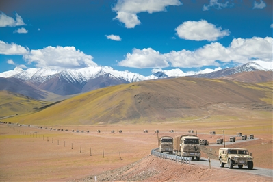 西寧聯勤保障中心汽車運輸某團一營一連在雪域高原執行運輸保障任務。孟釗 攝