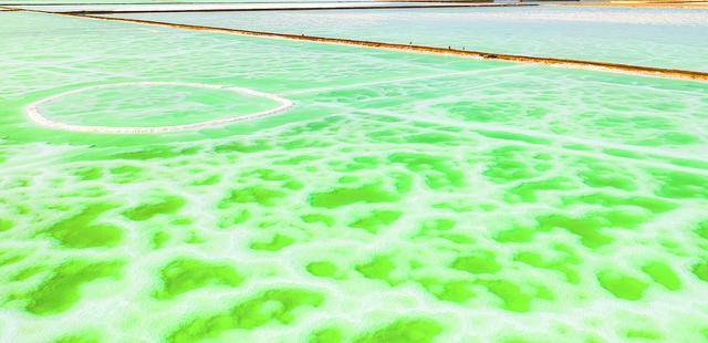 8月15日,航拍地處青海省海西州茫崖市的翡翠湖。翡翠湖是一個(gè)人工鹽湖,田字狀的湖水呈現(xiàn)出青翠的色彩。[詳細(xì)] -