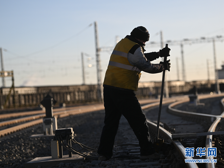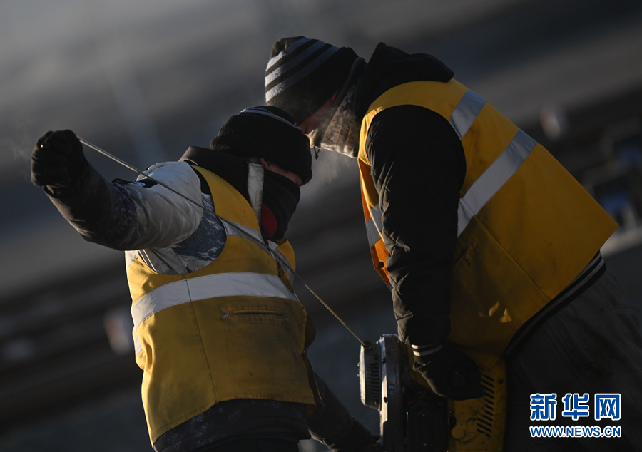 2月7日,中國鐵路青藏集團有限公司格爾木工務段格南線路工區的職工在格爾木南站施工。新華社記者 張龍 攝